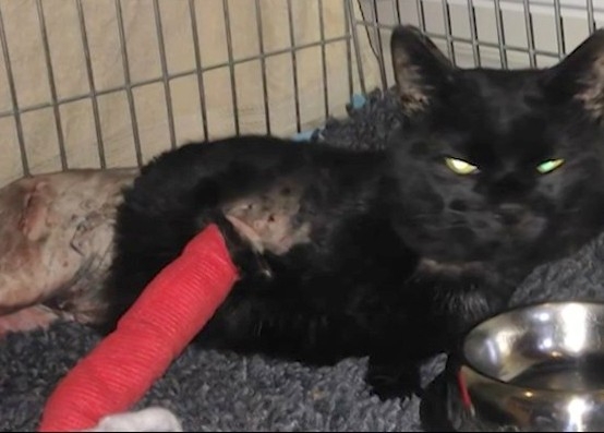 Um gato sobreviveu a duas saraivadas de tiros de espingarda de chumbo que fraturaram duas de suas pernas e penetraram em várias partes de seu corpo.