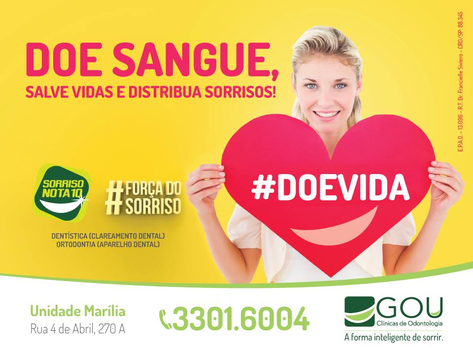 Prossegue até às 13h deste sábado (01) a campanha Dia “D” – Doe Sangue e Distribua Sorrisos! promovida pela GOU - Clinica de Marília, em parceria com o Hemocentro O objetivo é conscientizar todos os clientes, colaboradores e parceiros sobre a importância desse gesto de amor e cidadania, contribuindo para aumentar o