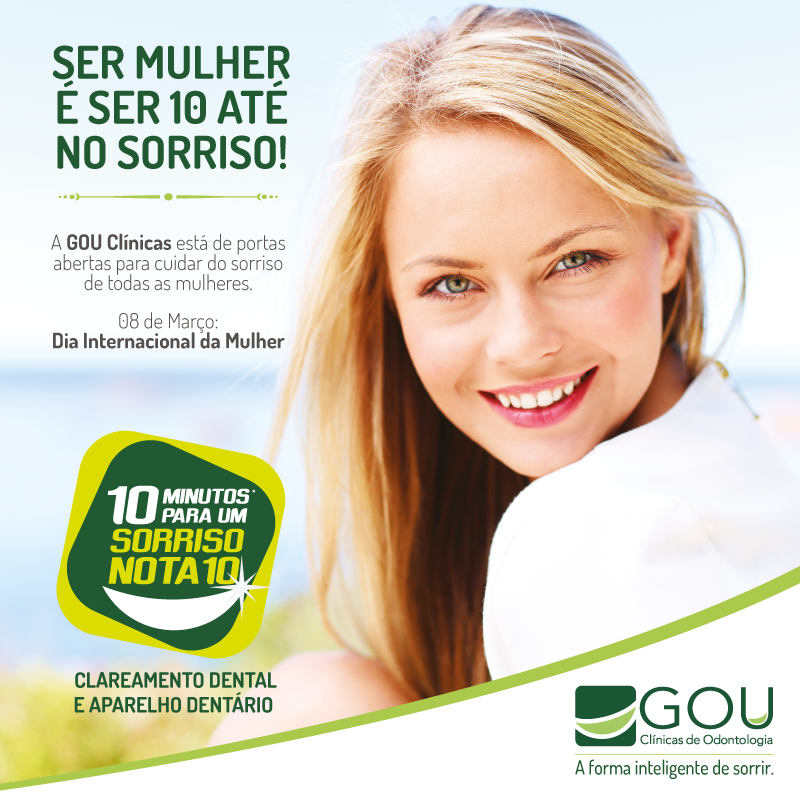 Para a GOU Clínicas, a auto estima começa em se olhar no espelho e se sentir bonita além de um sorriso encantador. Por isso, está convidando todas as mulheres para cuidar do seu sorriso e da sua beleza.
