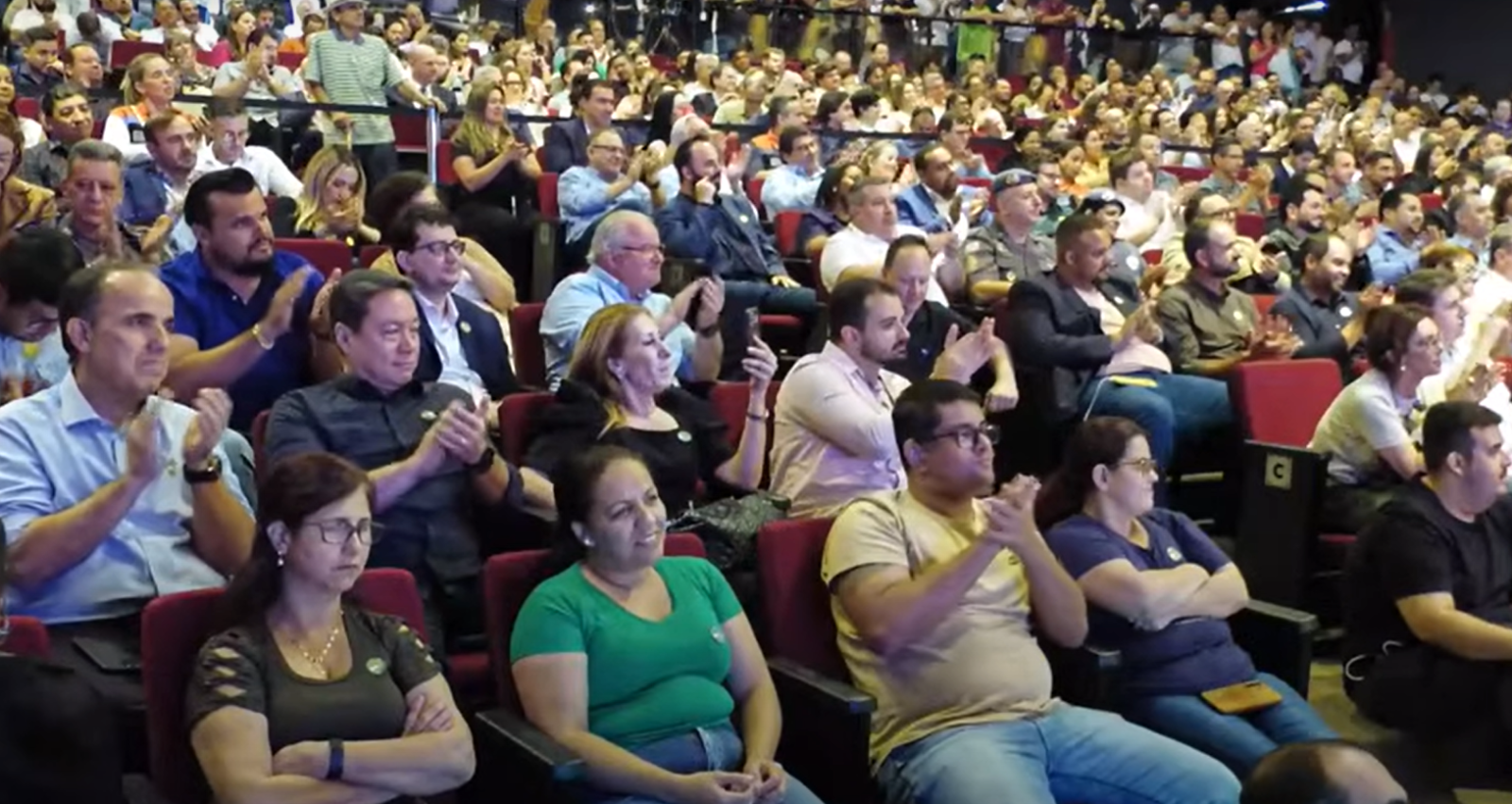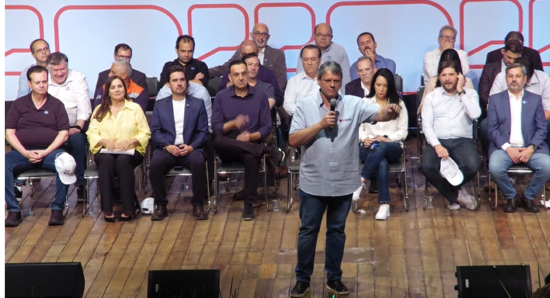 O governador Tarcísio de Freitas destaca os investimento na saúde durante seu discurso aos prefeitos de Marília, nesta sexta-feira, último dia de Caravana 3D: