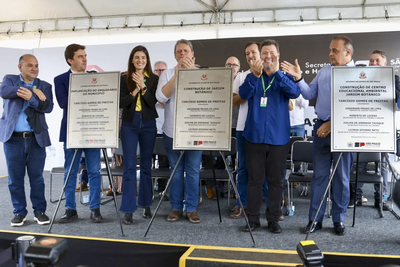 Acompanhada dos deputados estaduais Dani Alonso e Vinicius Camarinha, o governador de São Paulo, Tarcísio de Freitas (Republicanos) está cumprindo agenda oficial de compromissos no oeste paulista. Pela manhã, a comitiva esteve em Lençóis Paulista, onde entregou 70 casas de conjunto habitacional construído pela CDHU e inaugurou o Jardim Botânico e o primeiro Centro Educacional Ambiental, que juntos somam R$ 1,47 milhão com verba estadual.