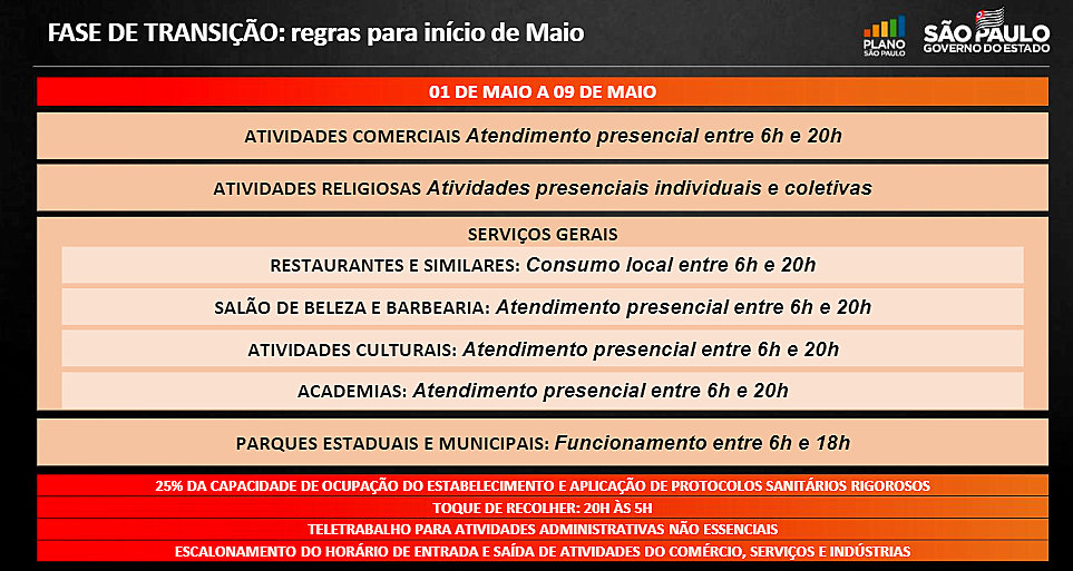 Agora, o horário estendido será, a partir de sábado, das 6h às 20h para atendimento presencial limitado a 25% de capacidade em comércios e serviços não essenciais. Antes, era das 11h às 19h para a maior parte dos setores.
