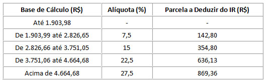 A nova tabela vale para o ano-calendário de 2015, ou seja, irá afetar o Imposto de Renda declarado pelos contribuintes em 2016.