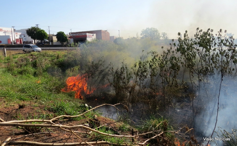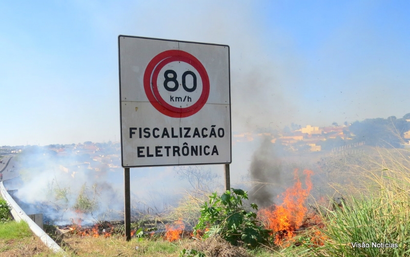 Um grande incêndio em mato foi registrado há pouco nas imediações do estádio do Pedro Sola, às margens da SP-294, a Rodovia do Contorno.