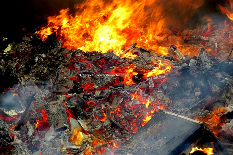 Uma grande pilha de brasas se formou com as chamas, e diversos produtos objetos, como disc-man, fitas cassetes e até uma televisão foram destruídos com o incêndio.