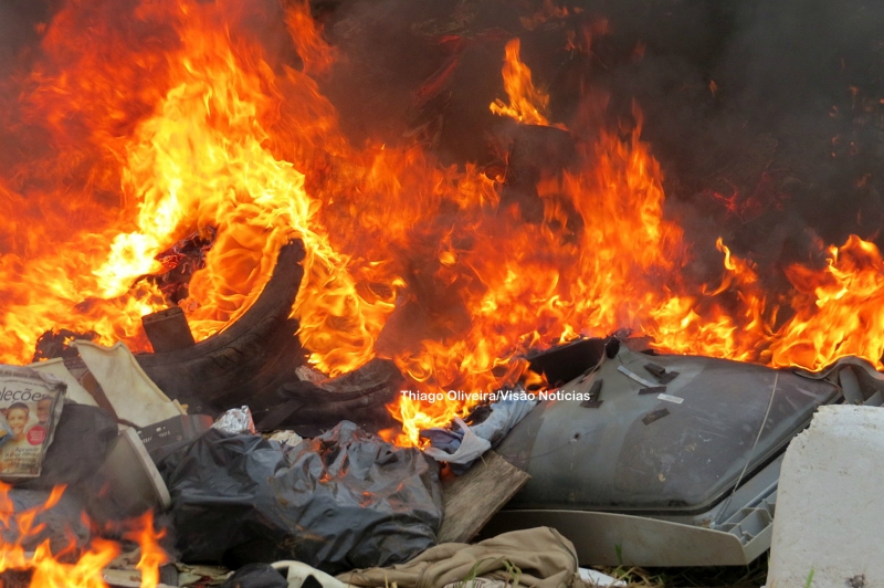 Quem passava pela avenida República em direção à Padre Nóbrega podia notar uma grande quantidade de fumaça no ar, proveniente dos entulhos incendiados na avenida Yusaburo Sasazaki, que fica paralela à República.