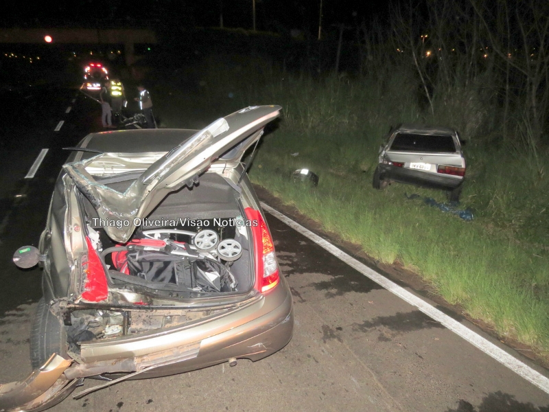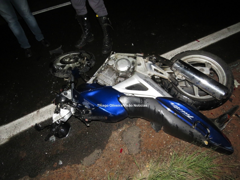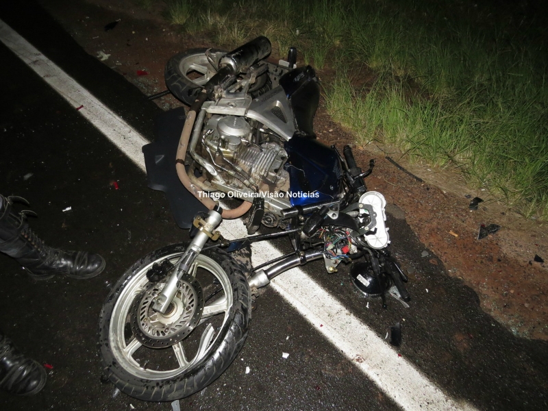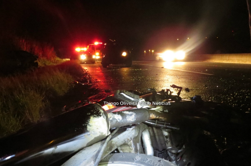 Os destroços da moto e dos carros ficaram espalhados por toda a rodovia, que teve o trânsito interditado por mais de meia hora.