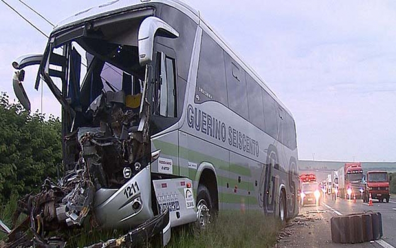 Acidente - O ônibus, que saiu de Marília, seguia sentido Campinas quando o motorista perdeu o controle da direção da direção e bateu na traseira de um caminhão que carregava três peças para uma usina. Com a força do impacto, a peça destruiu a frente do ônibus, atingindo o motorista e a passageira, que morreram na hora.
