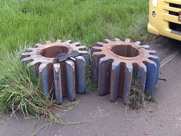 A pista sentido capital ficou parcialmente interditada e o trânsito chegou a 1 km de lentidão. Duas peças que caíram do caminhão já foram recolhidas da via. Com informações/fotos do G-1