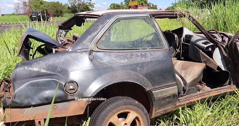 Com o violento impacto, os dois veículos foram parar além do acostamento.