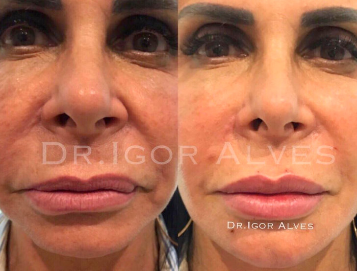 Nas imagens, é possível notar que a principal transformação ocorrida no rosto de Gretchen aconteceu no formato das maçãs do rosto, nariz e contorno dos lábios da artista – principalmente o superior, que ficou mais preenchido, o que tornou a face da dançarina e cantora mais harmônica.