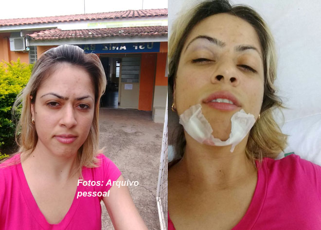 Daiana em frente ao posto (quando foi procurar o medicamento) e agora à noite, durante atendimento na UPA, após ter nova convulsão e sofrer o acidente.
