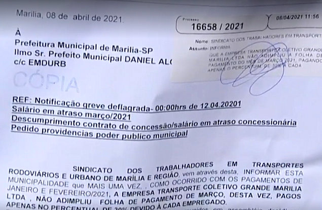 O Sindicato da categoria já protocolou um documento formal que prevê o início "oficial" da paralisação a partir de segunda-feira. Diante dessa situação, milhares de usuários estão sem transporte coletivo em Marília.