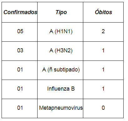 A cidade totaliza neste ano, 37 casos positivos de influenza, sendo 30 de H1N1, 05 casos de H3N2 e 2 Influenza A- não subtipado. Destes, 12 óbitos por H1N1 e 2 por Influenza A- não subtipado.