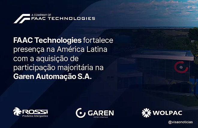 A FAAC, multinacional italiana líder no setor de automação e controle de acesso, anunciou a compra da empresa Garen Automação, com sede em Garça e líder em soluções de automação e controle de acesso. A multinacional passa a ter participação majoritária, conforme consta no comunicado.