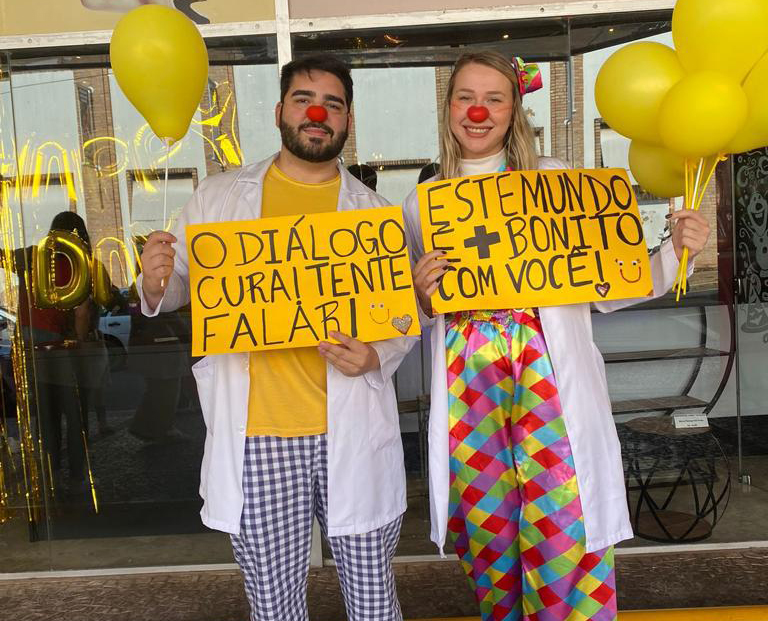 Os voluntários trocaram abraços com as pessoas e entregaram mensagem de apoio e solidariedade, alusiva à prevenção ao suicídio.