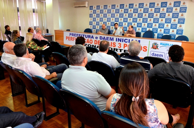 A Prefeitura avança no pacote de investimentos para ampliar o abastecimento de água em Marília. Com a participação de secretários municipais e dos vereadores Luiz Eduardo Nardi e Herval Rosa Seabra, o prefeito Vinicius Camarinha assinou a ordem de serviço para perfuração de mais três poços: dois na região do bairro Altos do Palmital e o terceiro próximo ao Conjunto Habitacional Marina Moretti, na zona Norte.