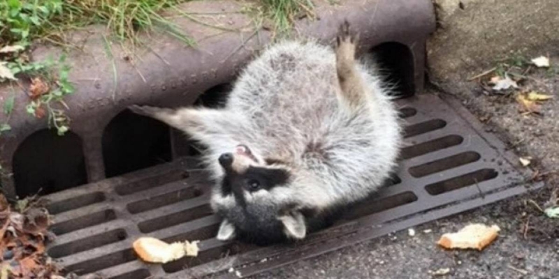 Um guaxinim fora de forma ficou preso em um bueiro ao procurar comida. O caso aconteceu em Zion, nos Estados Unidos. O animal precisou ser resgatado por estar gordinho demais para atravessar a passagem.