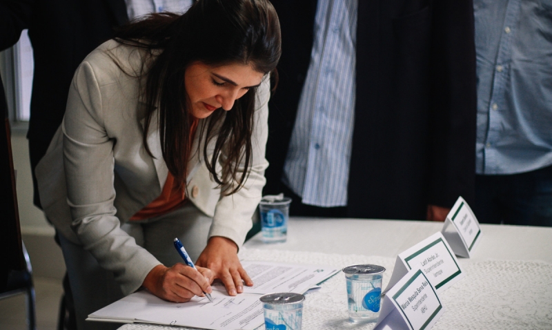 Autoridades durante a solenidade que marcou a assinatura do convênio.