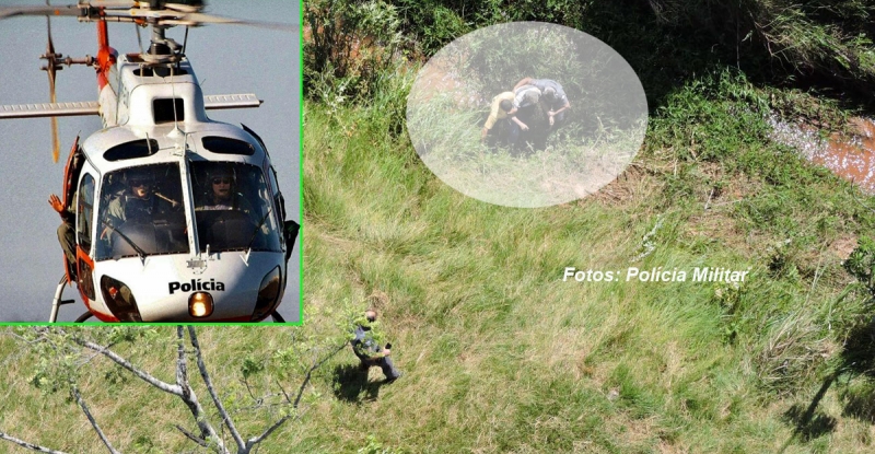 A vítima estava perdida no meio de uma mata e foi localizada pelo helicóptero Águia da PM