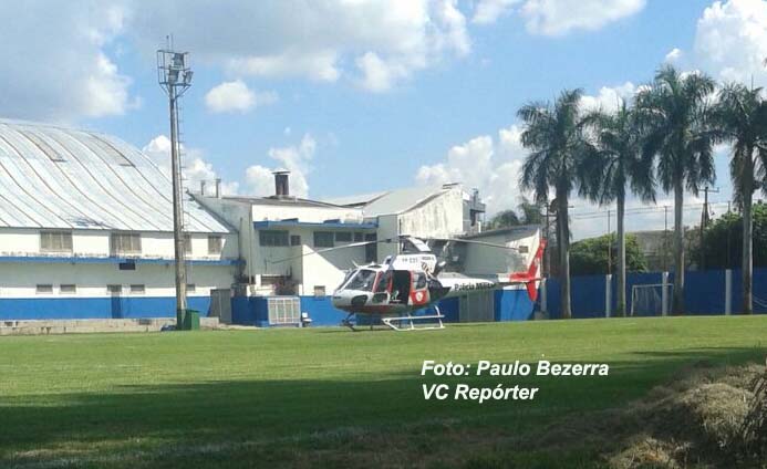 Operação mobiliza também o Corpo de Bombeiros. Aeronave pousou no campo do Yara Clube.