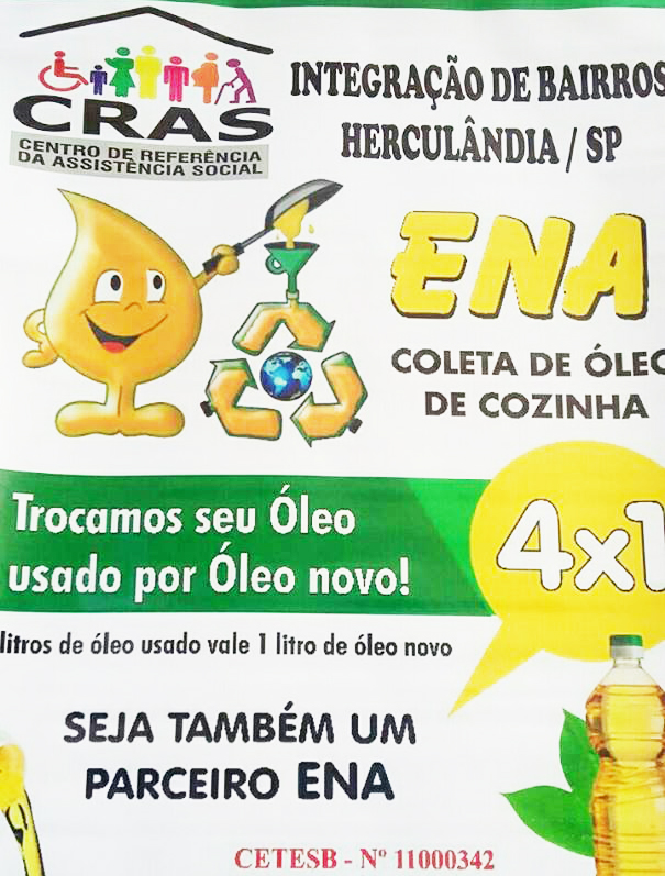 que já está atuando como ponto para coleta de óleo de cozinha usado. O morador que trocar quatro litros de óleo usado vai receber um litro de óleo novo. “Vamos cuidar do meio ambiente”, Alerta publicação feita pelo CRAS nas redes sociais.