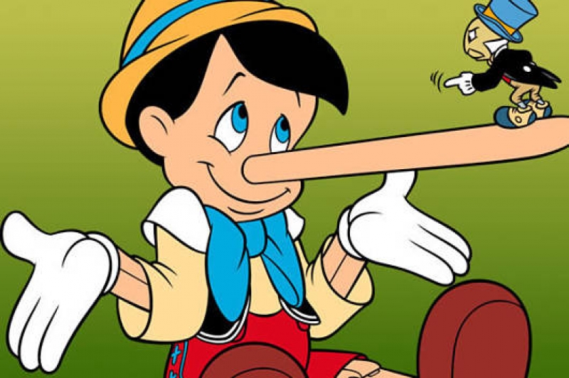 No imaginário de crianças e adultos, a mentira está associada à figura de Pinóquio, personagem que apareceu pela primeira vez em 1883 e toda vez que o boneco de madeira mente seu nariz cresce, como uma forma de evidenciar que a verdade sempre aparece.