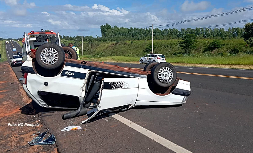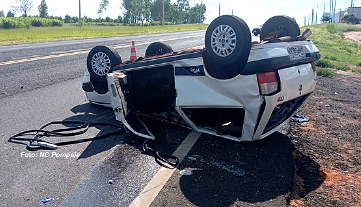 O caso ocorreu nesta segunda-feira (20), na rodovia SP-294 (comandante João Ribeiro de Barros), entre Pompeia e Paulópolis. O motorista, de 45 anos, dirigia um Fiat Uno (placas de Garça), tendo sua esposa como passageira, quando perdeu o controle do veículo, que capotou. Os dois ocupantes não teriam sofrido ferimentos.
