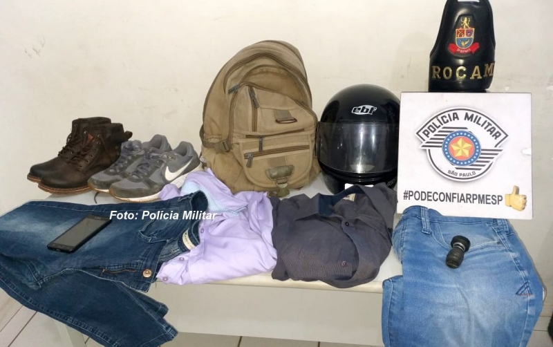 Na residência dele os policiais localizaram peças de roupas e calçados utilizado nos crimes, capacetes, uma mochila que aparece nas imagens da relojoaria e a motocicleta com o lacre rompido.