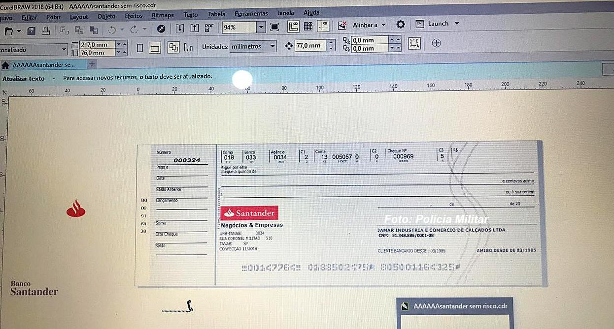 No computador que havia no escritório, a PM descobriu um programa onde o homem inseria os dados que o cliente pedia para criar o documento falso, inclusive era possível imprimir cheques.
