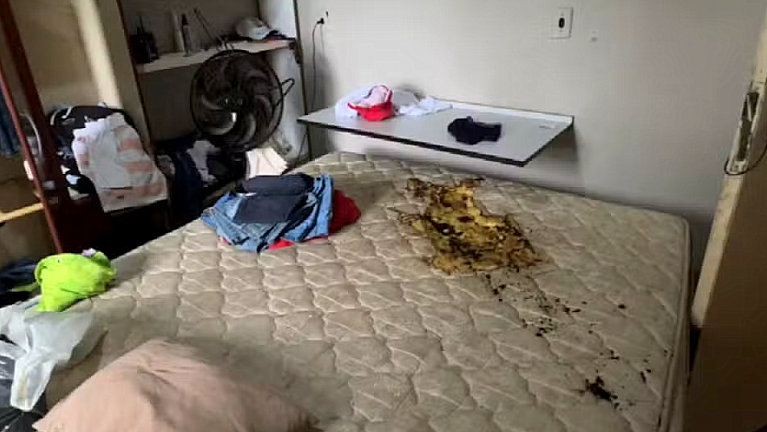 Colchão queimado onde vítima foi encontrada (foto: TV TEM).