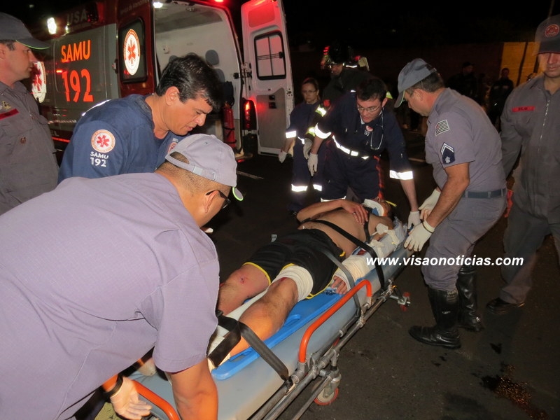 A vítima sofreu graves ferimentos - provavelmente fraturas numa das pernas e braços - além de suspeita de hemorragia interna. Foi socorrida pela UTI Móvel (USA) do SAMU ao Hospital das Clínicas. Com o impacto, até o airbag do carro foi acionado, além da frente e o vidro dianteiro ficarem bem danificados.