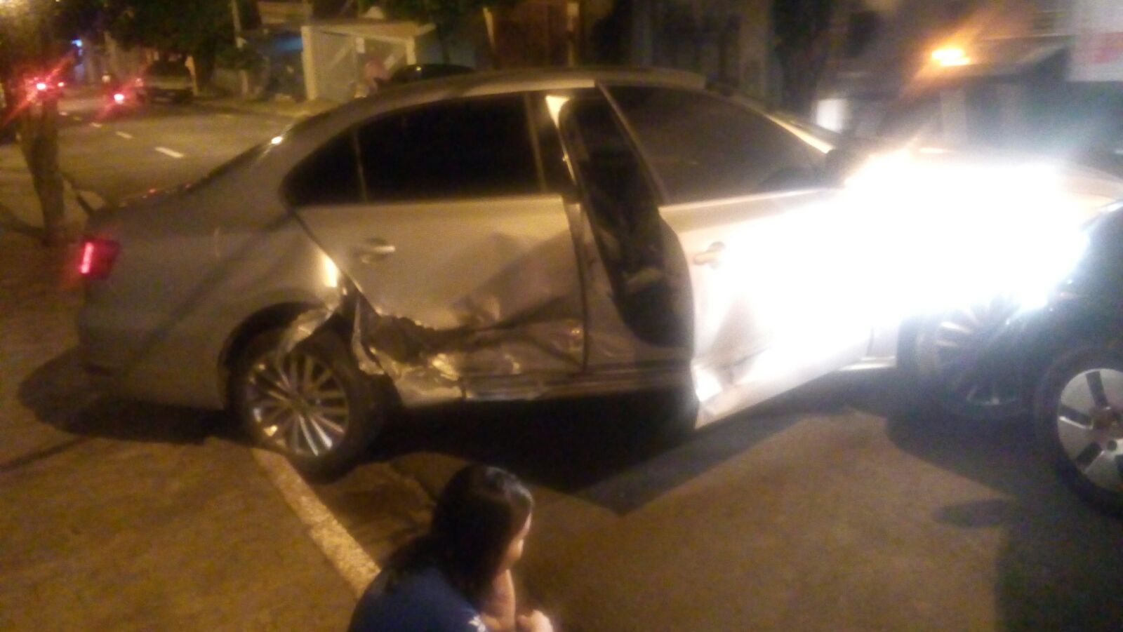 OUTRO ACIDENTE - Há pouco mais uma colisão, desta vez próximo ao centro da cidade. Foi na rua XV de Novembro esquina com a Taquaritinga, envolvendo dois carros. Com o violento impacto, um dos veículos ficou atravessado no meio da rua.