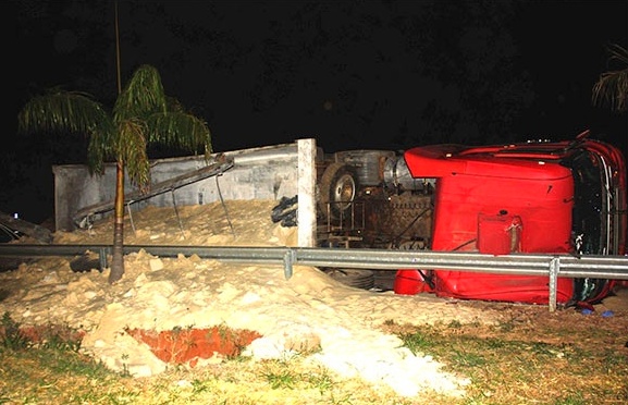 ACIDENTE - Na Rodovia João Ribeiro de Barros (SP-294), um grave acidente foi registrado ontem à noite. Uma carreta Scania com placas de Miracatu (SP), carregada com açúcar, tombou ao fazer a alça do trevo da cidade de Parapuã (a 110 km de Marília).