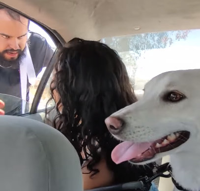 Após exibir as mensagens, o homem foi levado até uma cerca, onde a dona de Navy pediu para ele se segurar e contar até 15. Enquanto ele contava, a mulher e o amigo do suspeito voltaram param o carro com a cachorra.