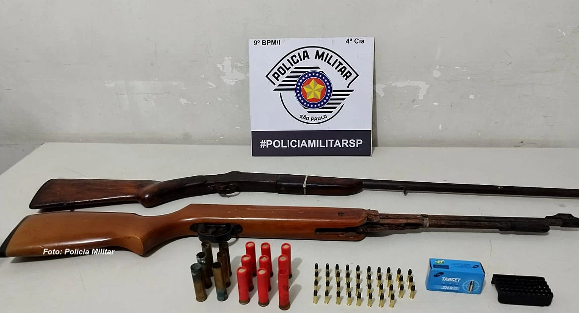 Quando os policiais foram ao sítio, o aposentado já havia jogado fora o produto. Mas, como a esposa relatou que ele tinha armas em casa, foi feita uma vistoria no imóvel, sendo localizadas duas espingardas e munições em cima de um guarda roupas.