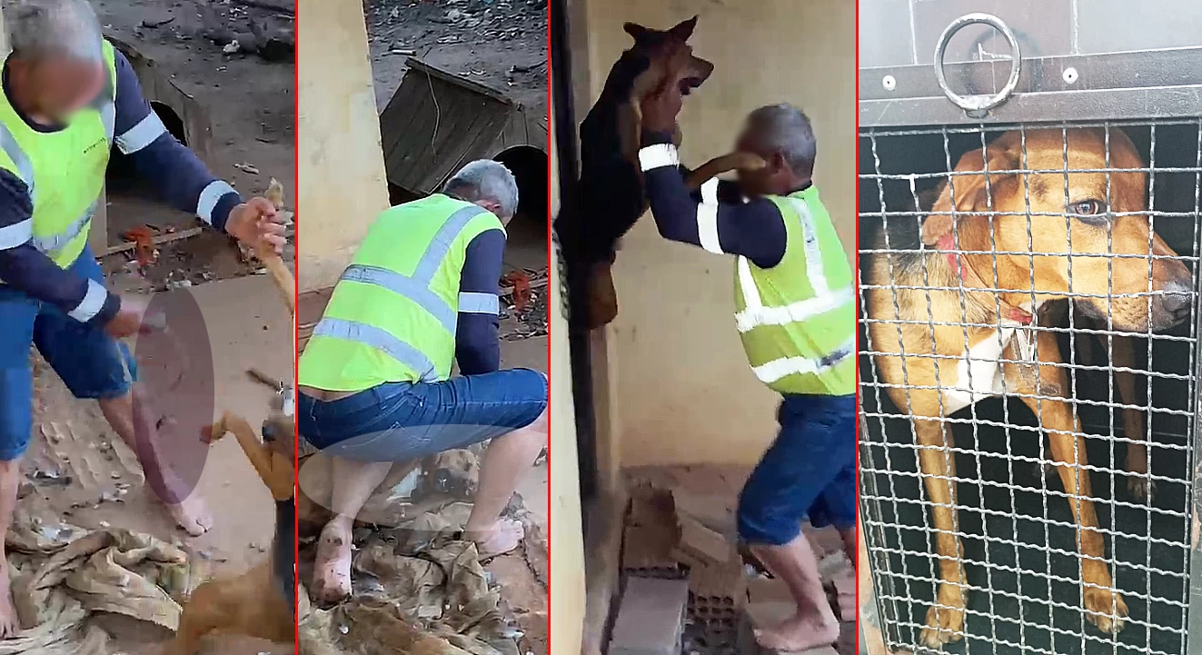 Depois, ergue o animal e o joga violentamente para o interior da residência que, desesperado, tenta fugir para o quintal. Ao final, antes de acorrentá-lo, ainda volta a praticar mais agressões. O homem não percebeu, mas toda a cena covarde foi filmada.