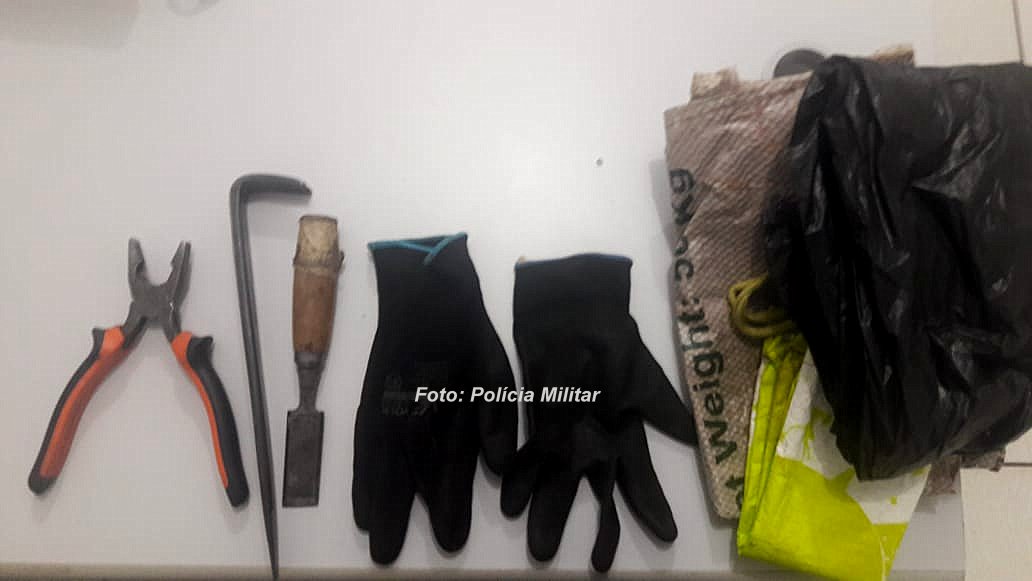 Os policiais militares encontram com o acusado uma bolsa contendo outros equipamentos usados para a prática de arrombamentos, como luvas, alicate, formão e três sacos vazios que seriam utilizados para facilitar o transporte dos produtos furtados.