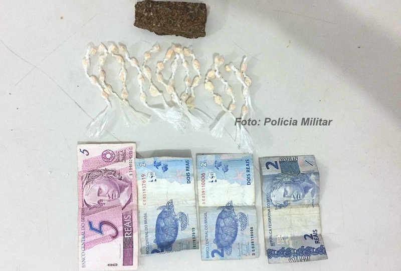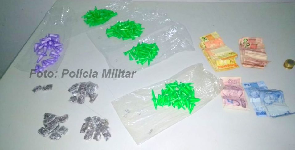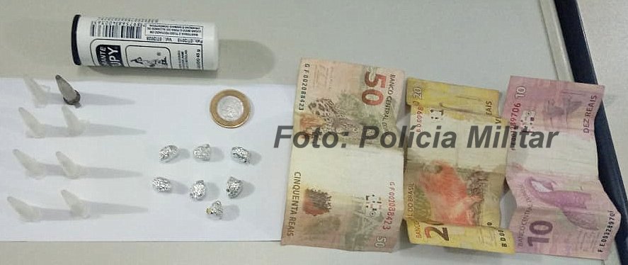 Ao ser revistada, foram encontrados dentro de um recipiente plástico oito pinos de cocaína e mais sete de crack, além de R$ 81,00 dentro de um maço de cigarro. Ficou caracterizado o tráfico e, por isso, o elemento foi preso em flagrante.