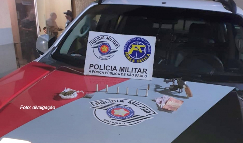 Um homem foi preso acusado de tráfico de drogas e posse irregular de arma de fogo em Ourinhos. Na ação foram apreendidos pinos de cocaína, porções de maconha e revólver municiado.