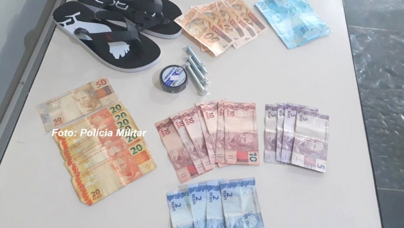 Além de objetos, foi encontrada a quantia de R$ 668,00, sendo que 400 reais estavam separados, em duas notas de 100 e mais quatro cédulas de R$ 50,00.