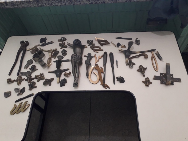 Um homem de 34 anos foi preso em flagrante pela Polícia Militar, em Garça, acusado de furtar diversas peças de bronze que estavam instalados em túmulos do cemitério. Aos policiais, ele confessou que iria trocar os objetos por drogas.