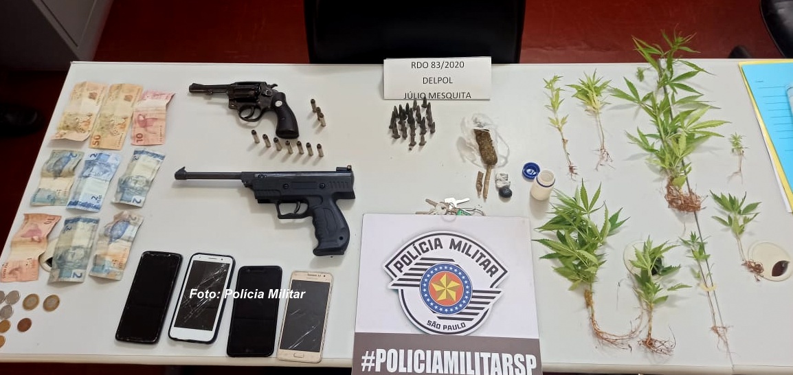 Um homem foi preso neste fim de semana em Júlio Mesquita, acusado de cultivar maconha. Ele foi surpreendido no momento em que regava os pés que estavam plantados em um terreno ao lado de sua casa.