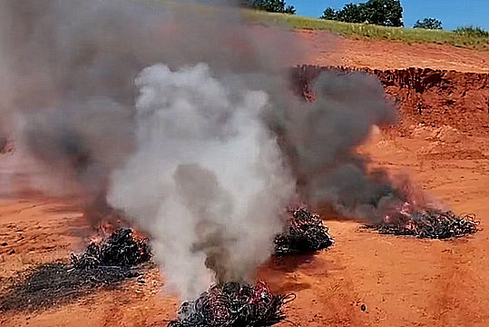 Uma guarnição da PM estava em patrulhamento pelo bairro Parque das Indústrias quando os PMs avistaram uma densa fumaça negra saindo de um terreno e decidiram averiguar, pois suspeitavam que poderia ser um incêndio num imóvel.