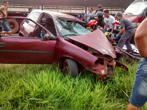 O motorista de um Corsa invadiu a pista contrária bateu lateralmente em um caminhão que fazia o sentido oposto. Com a batida o motorista do Corsa, Osvaldo Gonçalves Vieira, de 40 anos, ficou preso às ferragens, foi retirado e socorrido pela equipe do Corpo de Bombeiros mas, não resistiu e morreu.