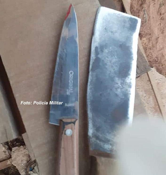 Além da faca, os policiais também apreenderam uma pequena foice.
