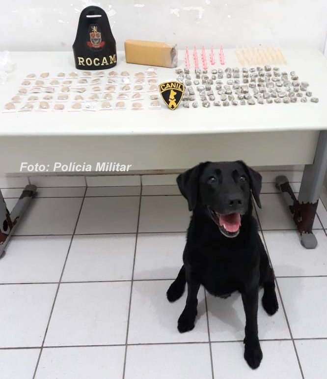 "Pretinha" ajudou os policiais na apreensão de mais drogas.