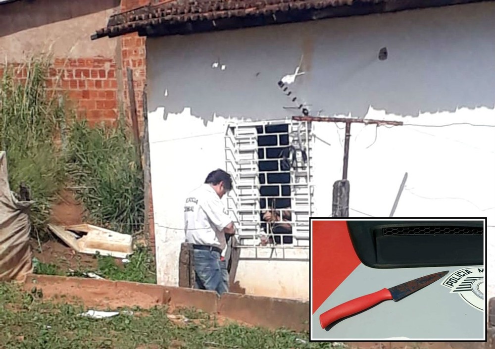 Crime ocorreu na casa da vítima. No detalhe, a faca usada.Ainda segundo informações do boletim de ocorrência, Carlos Roberto estaria sozinho na cela quando foi encontrado sem vida. Consultada, a Secretaria de Administrações Penitenciárias (SAP) ainda não se manifestou sobre o caso.