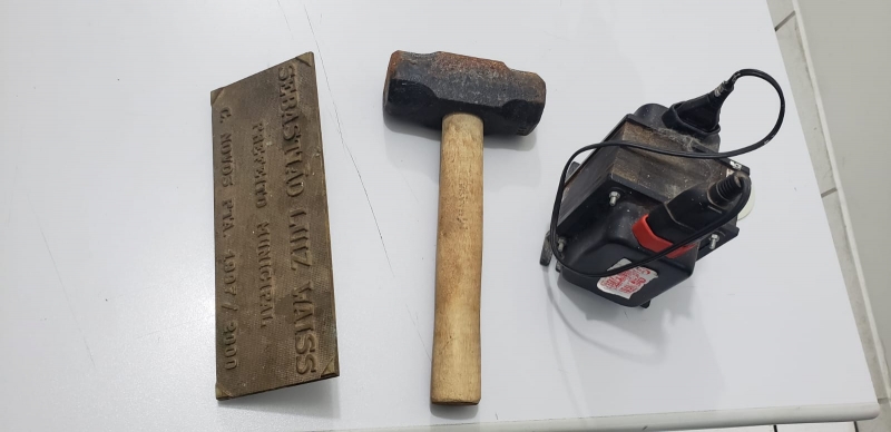 Logo perceberam que o criminoso estava tentando se esconder ali, após ser flagrado. Nas buscas, encontraram o "espertalhão" dentro de um pequeno armário. Na mochila havia alguns objetos, como uma marreta, placa de identificação e um transformador.