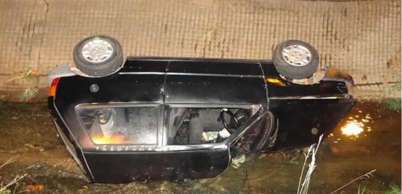 O condutor perdeu o controle da direção, colidiu contra uma placa de parada obrigatória e caiu com o carro no rio, que tem cerca de quatro metros de altura.